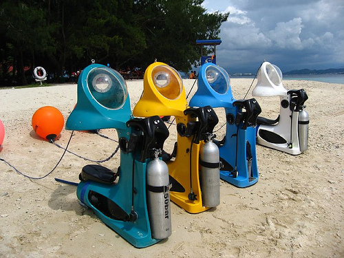 海底小綿羊的造型和水上摩托車有點像,但是它在車頭處是直接有一個架子連到手把上方,然後最上面有一個像太空人一樣的頭盔,每一部車頭處都有一個空氣筒離到頭盔,車尾有一個負責推進的大洞。每一個小綿羊都有配備一個潛水夫跟著照顧你,然後還有一個潛水夫幫你這一批的人拍DV,回來後會一人給一張DVD讓你做紀念,但是這樣就一個人要價馬幣250元,相當於台幣2500元左右。